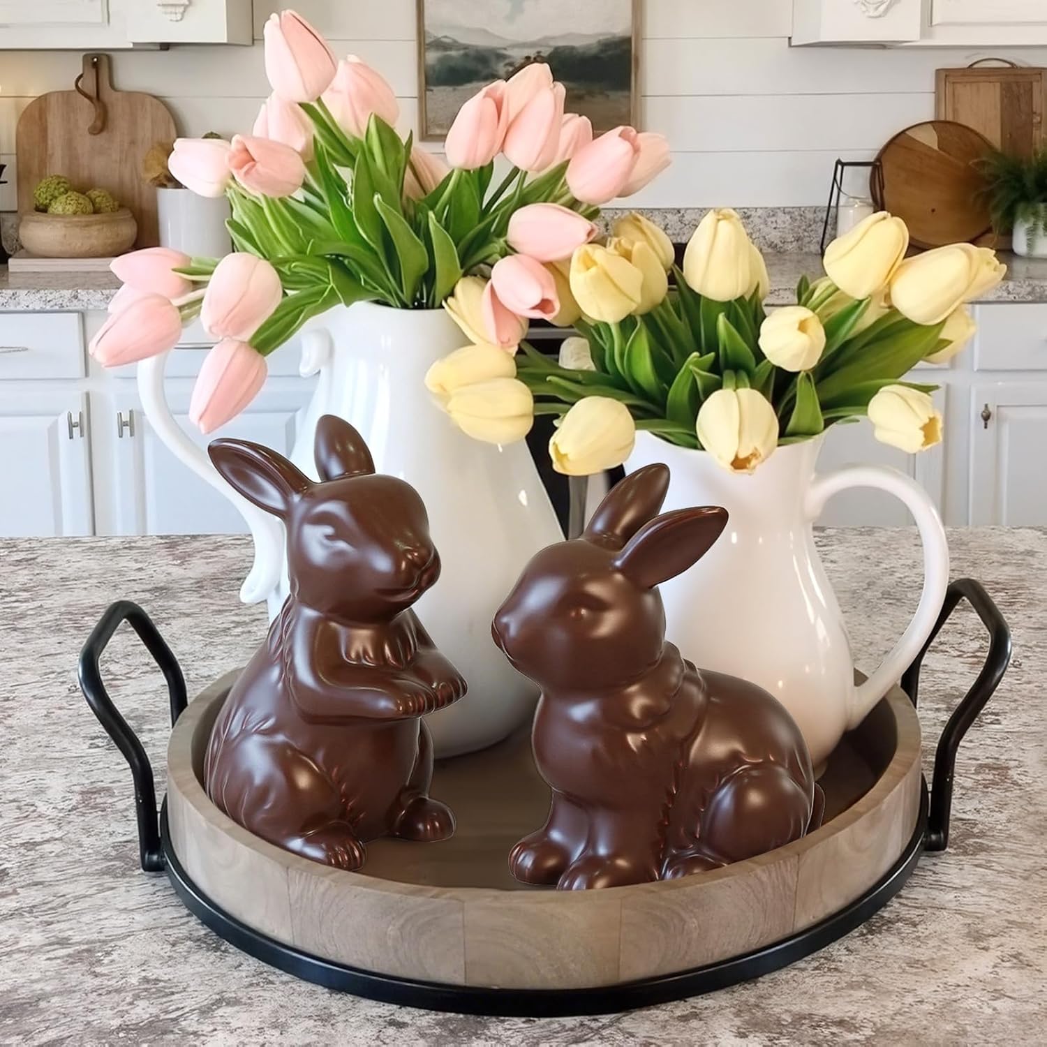 2 pack chocolate ceramic bunny figurines