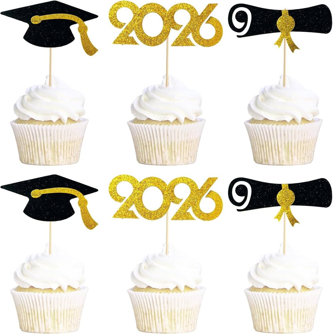2026 Graduation Cupcake Toppers 48 Pack on sale for $7.99 but with promo code CX59BFY7 you score it for $3.49!