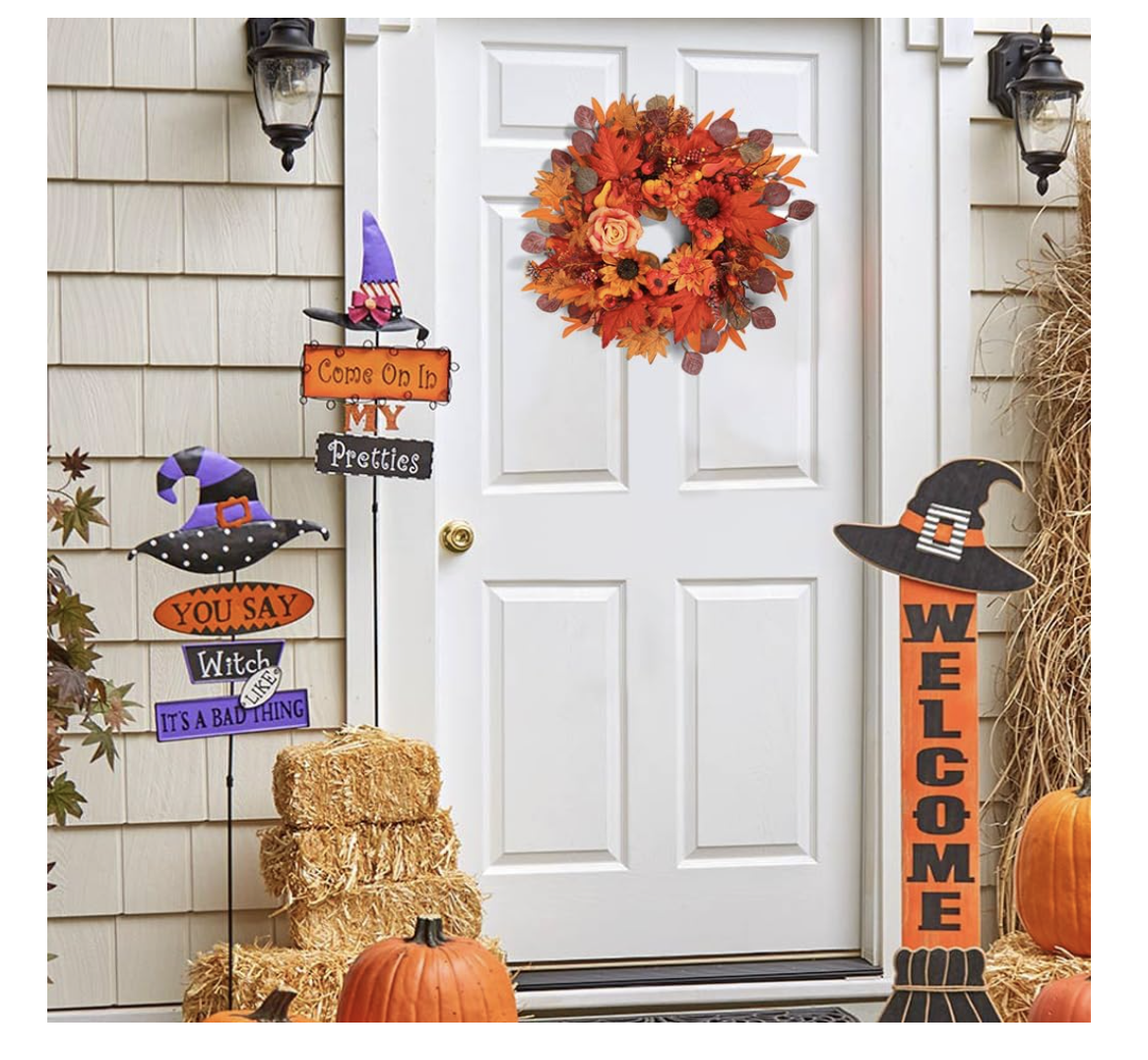 24″ Fall Wreath for Front Door Outside, Orange or Black Options, Was $49.99 down to $24.99 with promo code CRR42KMS.