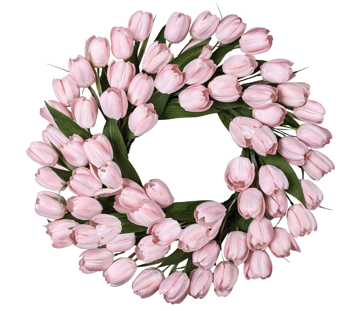 24 Inch Artificial Tulip Spring Wreath was originally $59.99 and drops to $41.99 when you use promo code GRXNIO8T at checkout! Such an easy way to brighten up your door!