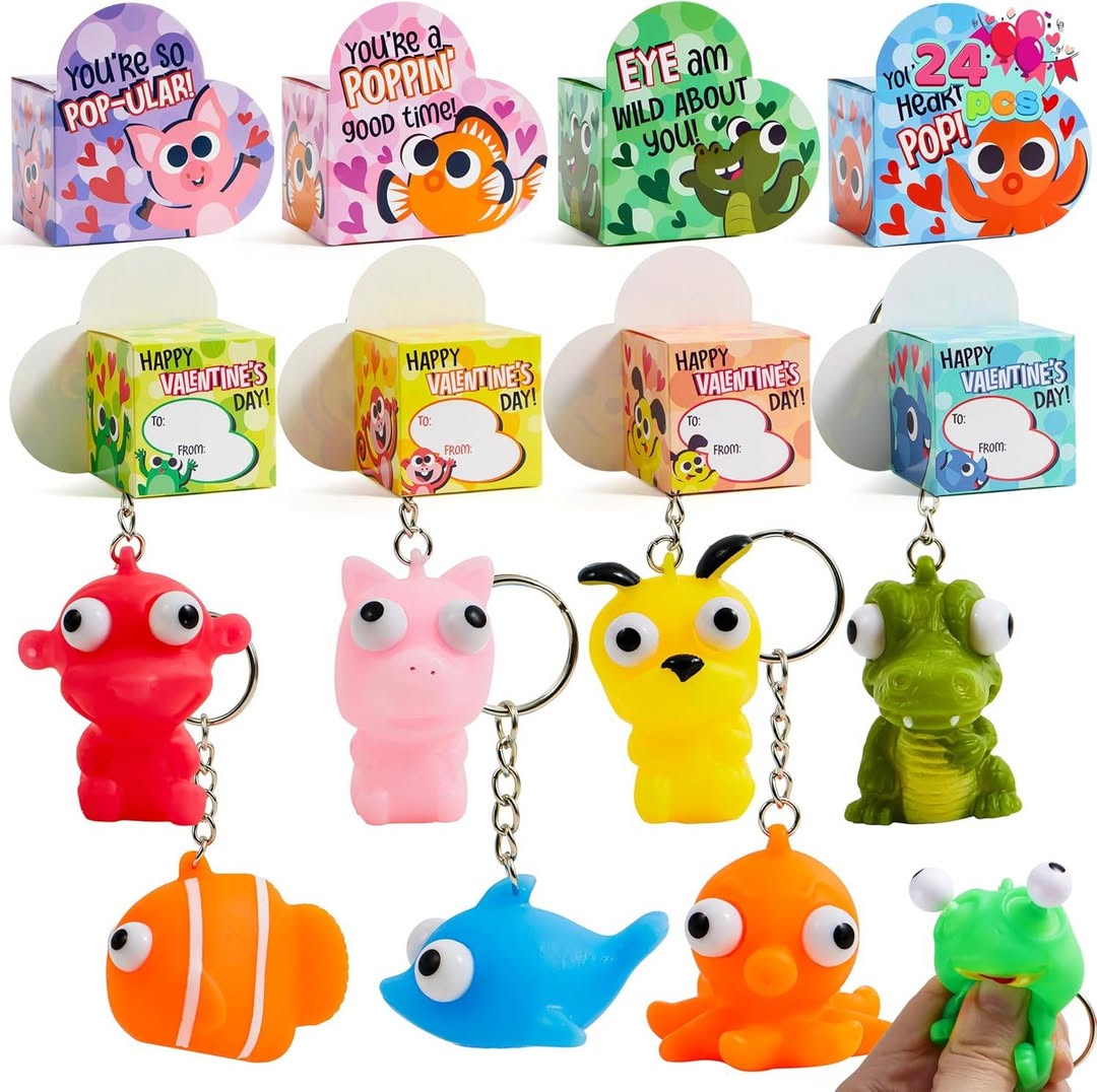 24 Packs Valentine Popping Eyes Keychains with Heart Box on sale for $22.84 but with clippable coupon you score it for $15.98!!