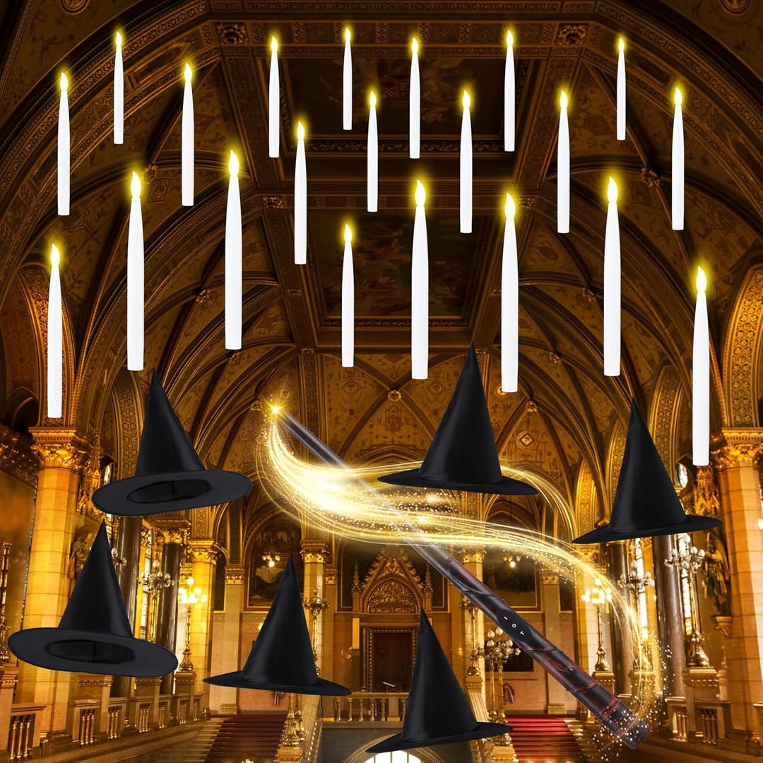 JOYIN 30Pcs Halloween Floating Candles and Witch Hat Light Up with Wand Remote Set drops to $16.99 when you add it to your cart!