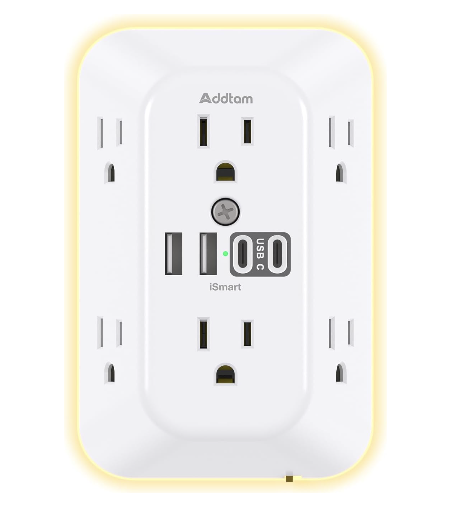 Addtam Surge Protector Outlet Extender with Night Light, retails for $19.99 but sale price plus coupon and promo code WY3DU7AR snags you one for $11.99!!!