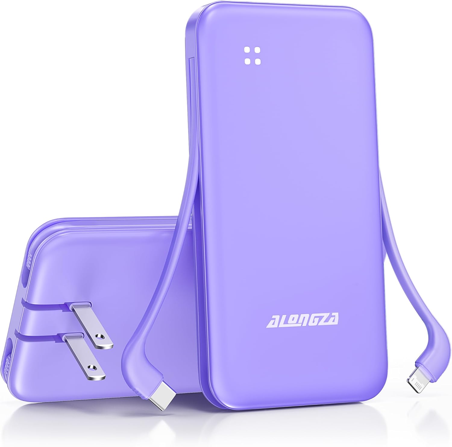 Alongza Portable Charger Built-in Cables and AC Wall Plug, promo code JDC56Z38 should auto apply, dropping as low as $14.99!!! Price varies by color option.