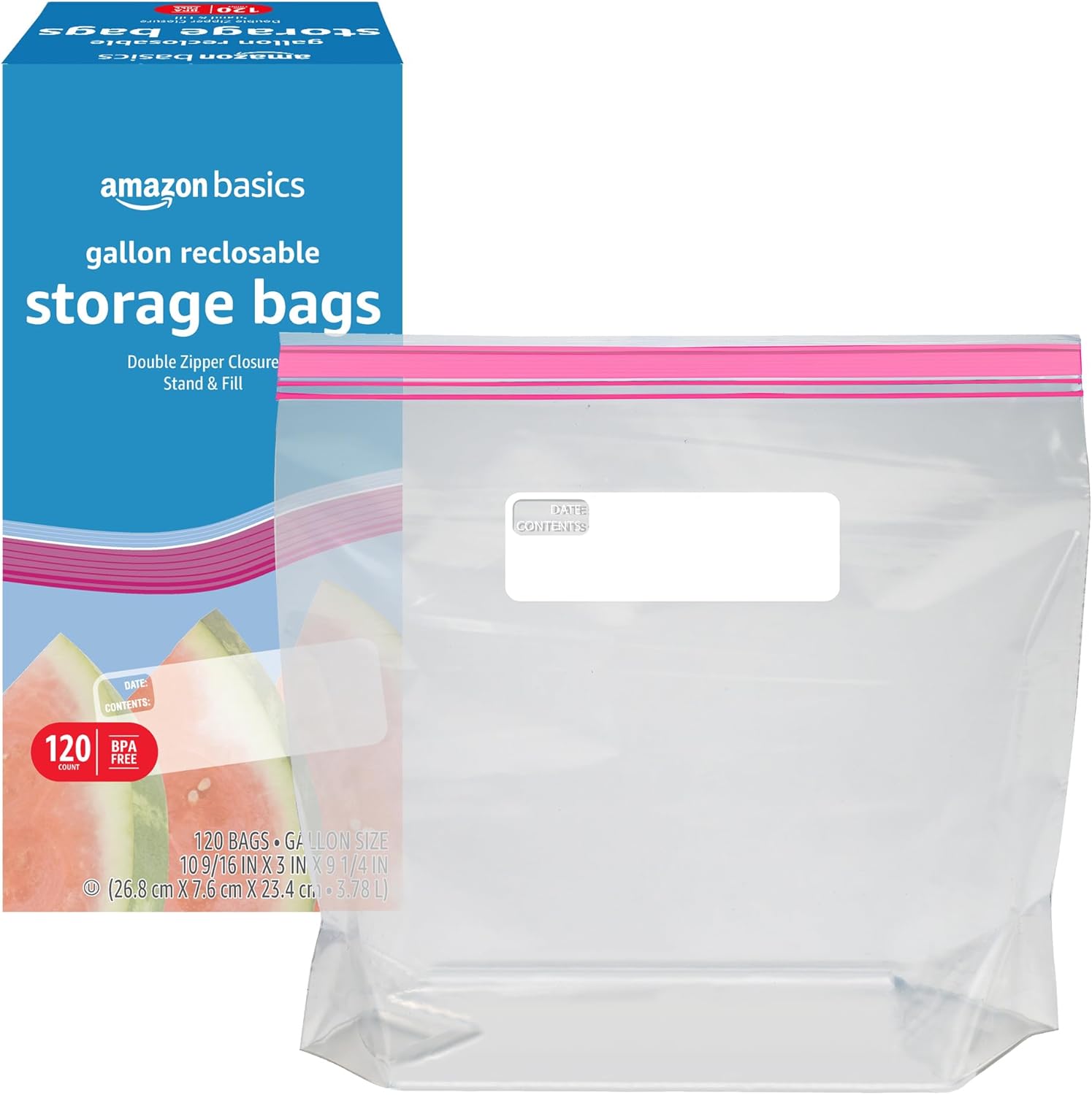 Amazon Basics Reclosable Gallon Food Storage Bags, 120 Count