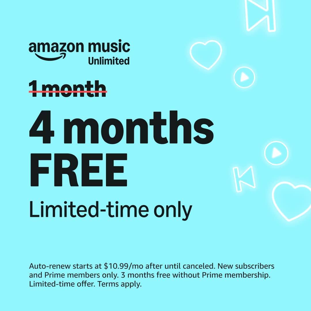 We took advantage of this deal and listening to it now!!! I figured for 4 FREE months I’m gonna try it out!!! Amazon is offering Prime Members who are new Amazon Music Unlimited subscribers their first FOUR months for FREE!