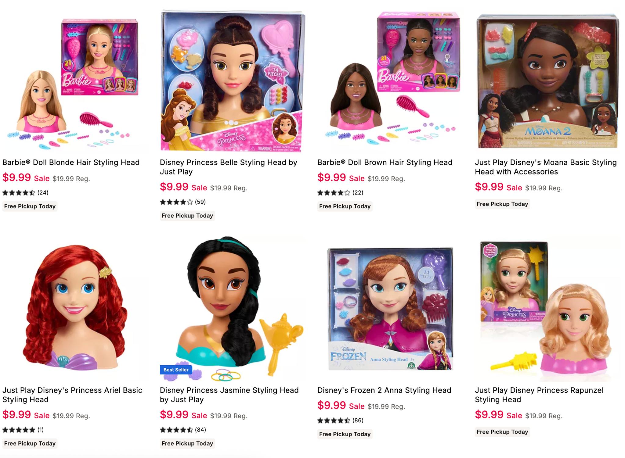 Barbie/Disney Styling Heads with Accessories for only $9.99 at Kohl’s!!! Select in store pick up to avoid shipping! There’s a bunch to pick from too!