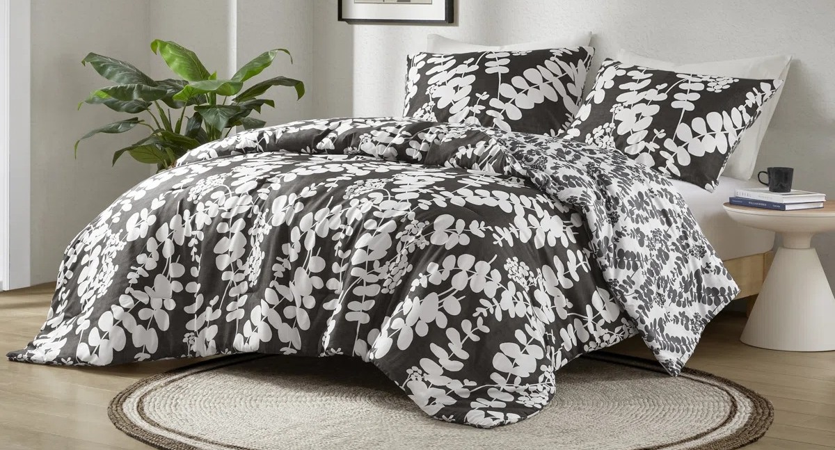 Calliope Floral Reversible Comforter Set in Farmhouse Style on sale for $29.99 for the King and $26.99 for the Queen! I love the black and white pattern! This is Wayfair so you will need to get to $35 to score free shipping!