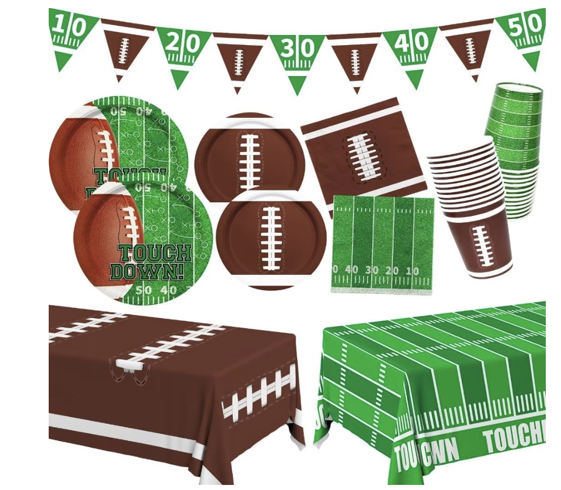 Football Party Supplies Kit serving 24, including dinner plates, dessert napkins, cups, banner, and touchdown tablecloth, was $32.98 and is on sale for $23.98! A quick and easy way to cover everything for game day before it’s gone!