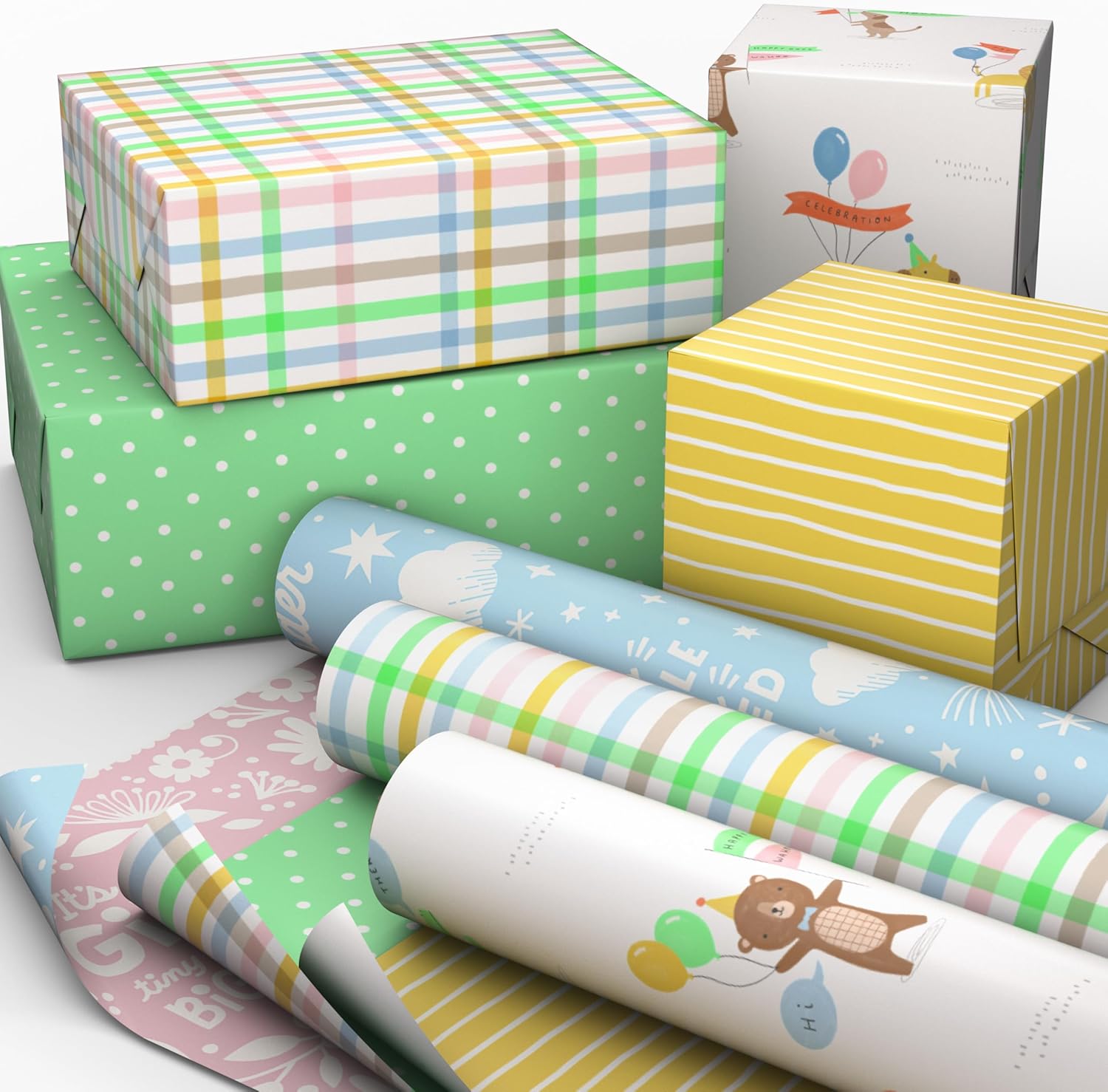 Hallmark Baby Shower Reversible Wrapping Paper Rolls (3 Rolls)