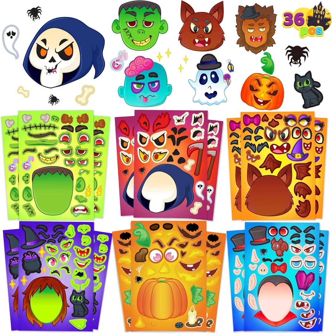 JOYIN 36 PCS Halloween Make-a-Face Sticker Sheet on sale for $6.65 but with promo code L8B4DS9T you score it for $3.99!!