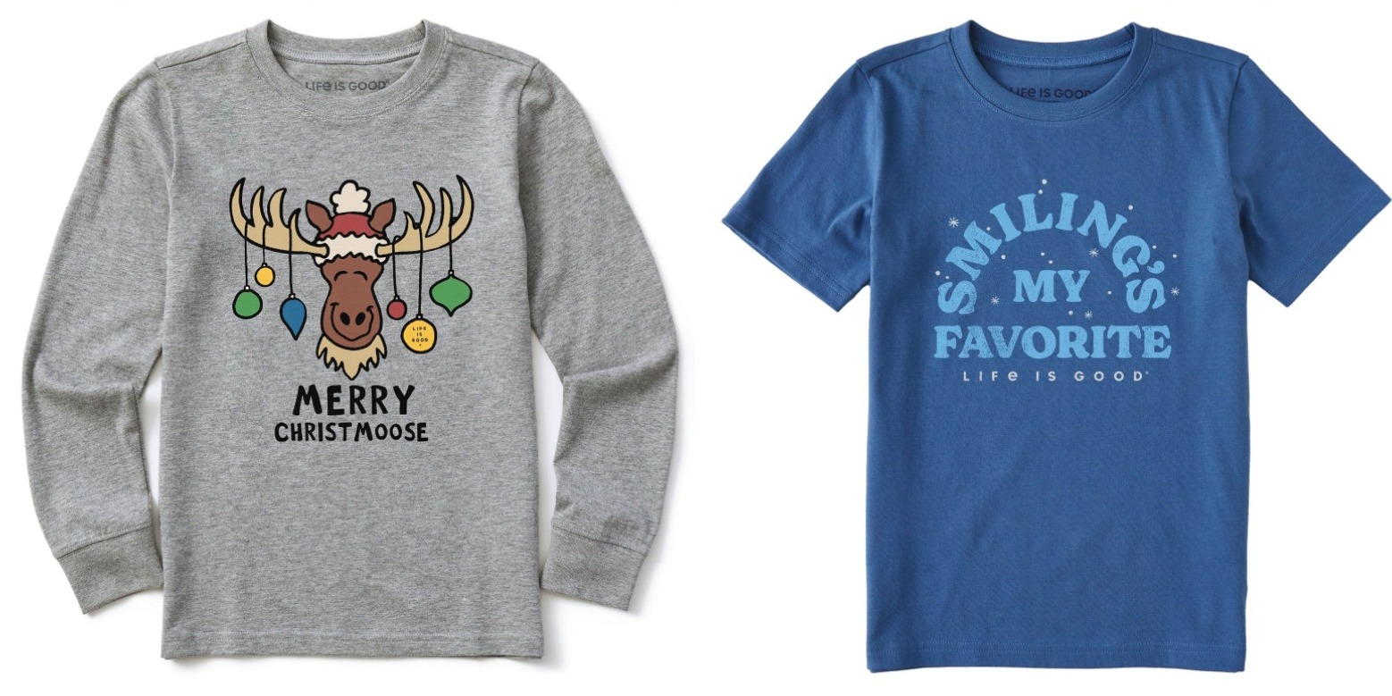 Life is GOOD is having a GREAT sale on Tees!! They are buy TWO, get ONE free today and they ship FREE!! There’s so many great options for the whole fam!!