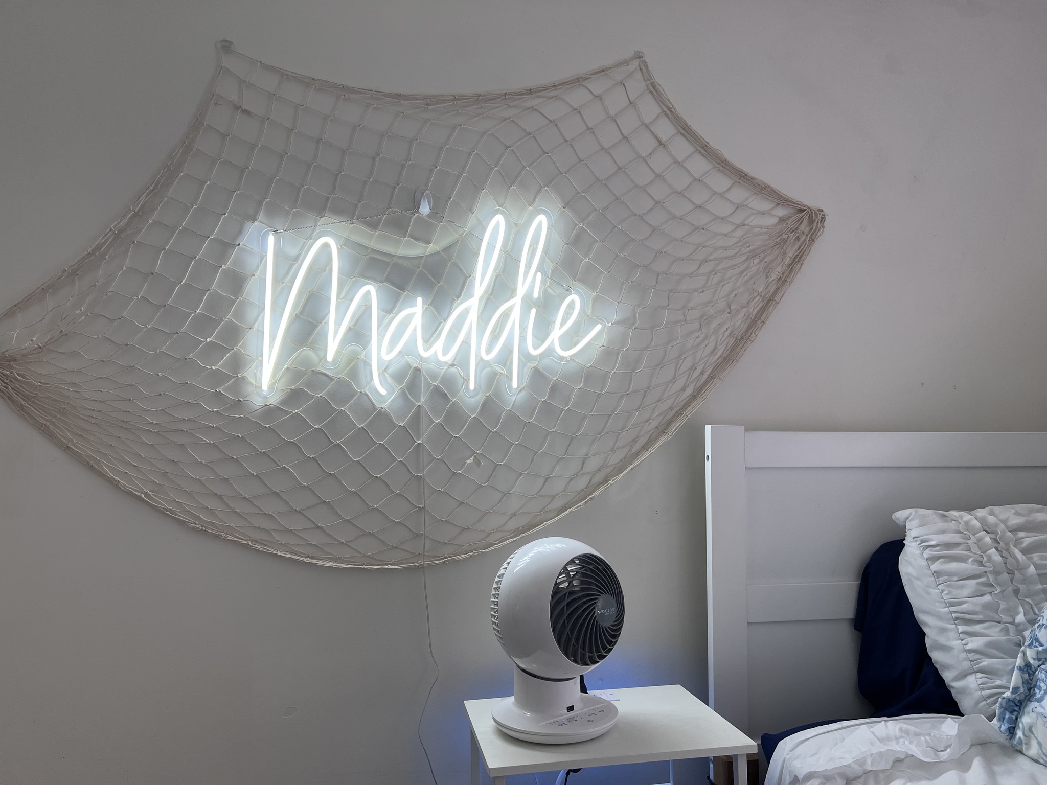 Madison’s neon looked amazing in her dorm!! She added a little net behind it help it tie into her beachy themed room! They are 75% off today with promo code YYAFQUVM, her sign is the one of the larger options!