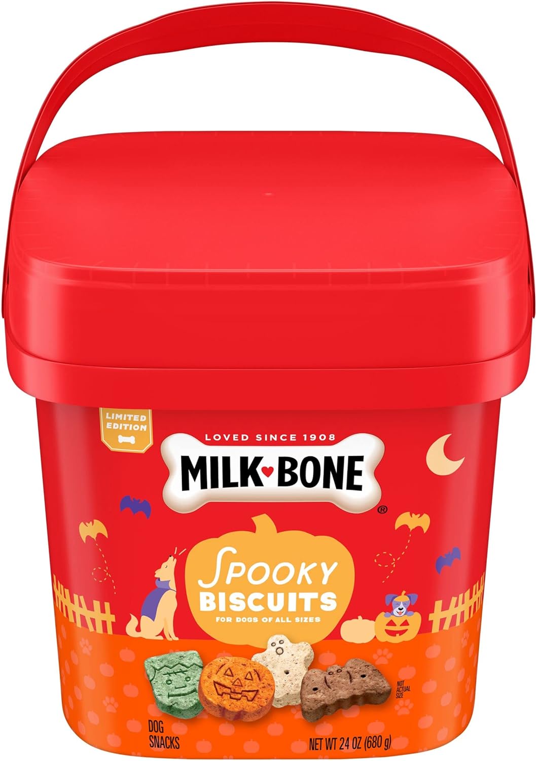 Milk-Bone Limited Edition Halloween Spooky Biscuit Dog Treats, 24 Ounce Pail, on sale now for just $6.74!!