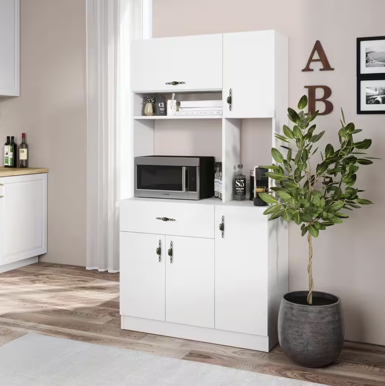 Monti White Buffet with Hutch and Drawer for Microwave, on sale now for only $100.55 at The Home Depot!!