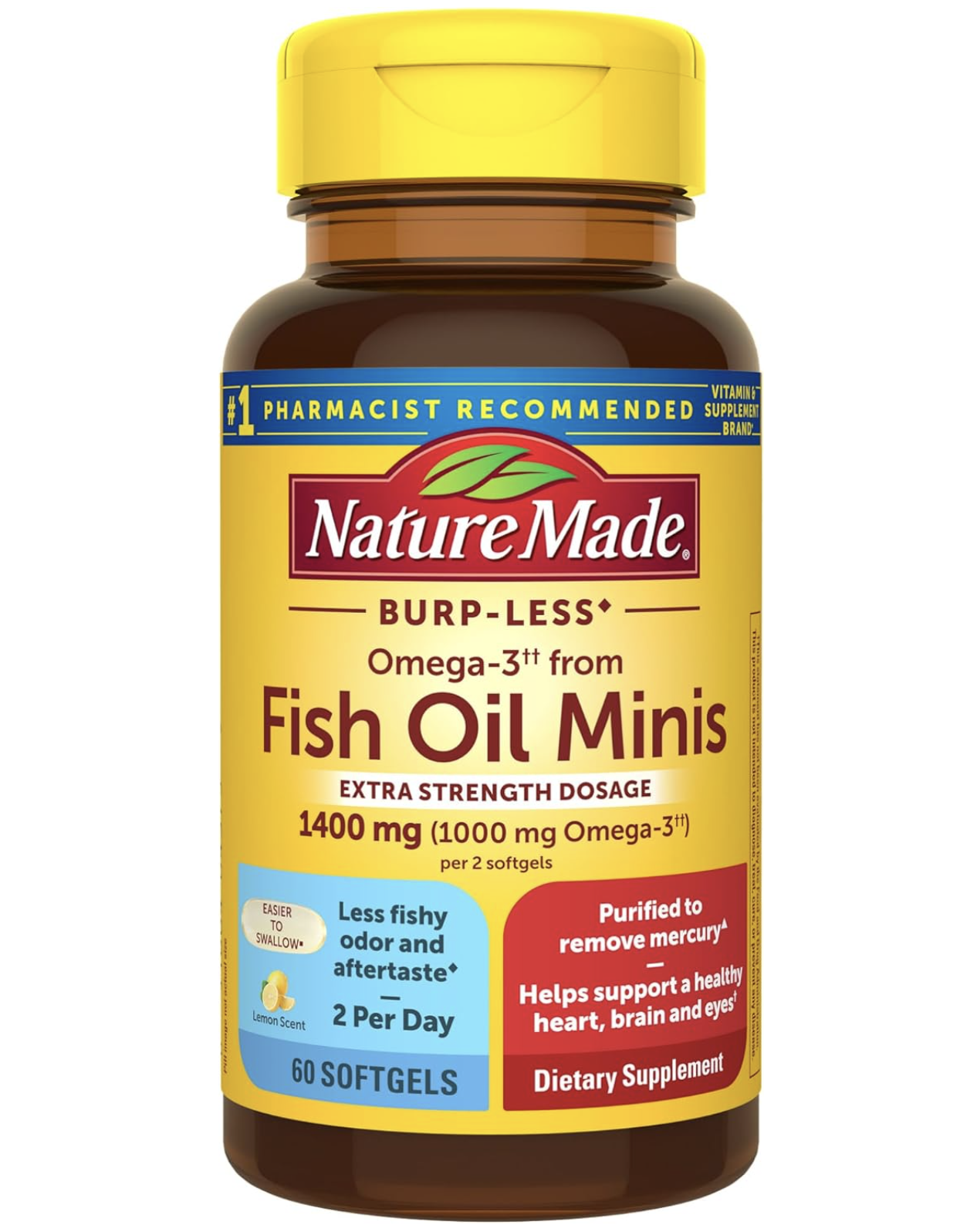Nature Made Extra Strength Burp Less Fish Oil Omega 3 Supplements 1400 mg Minis, 60 count on sale for $4.74!! Even less if you opt for Subscribe and Save!