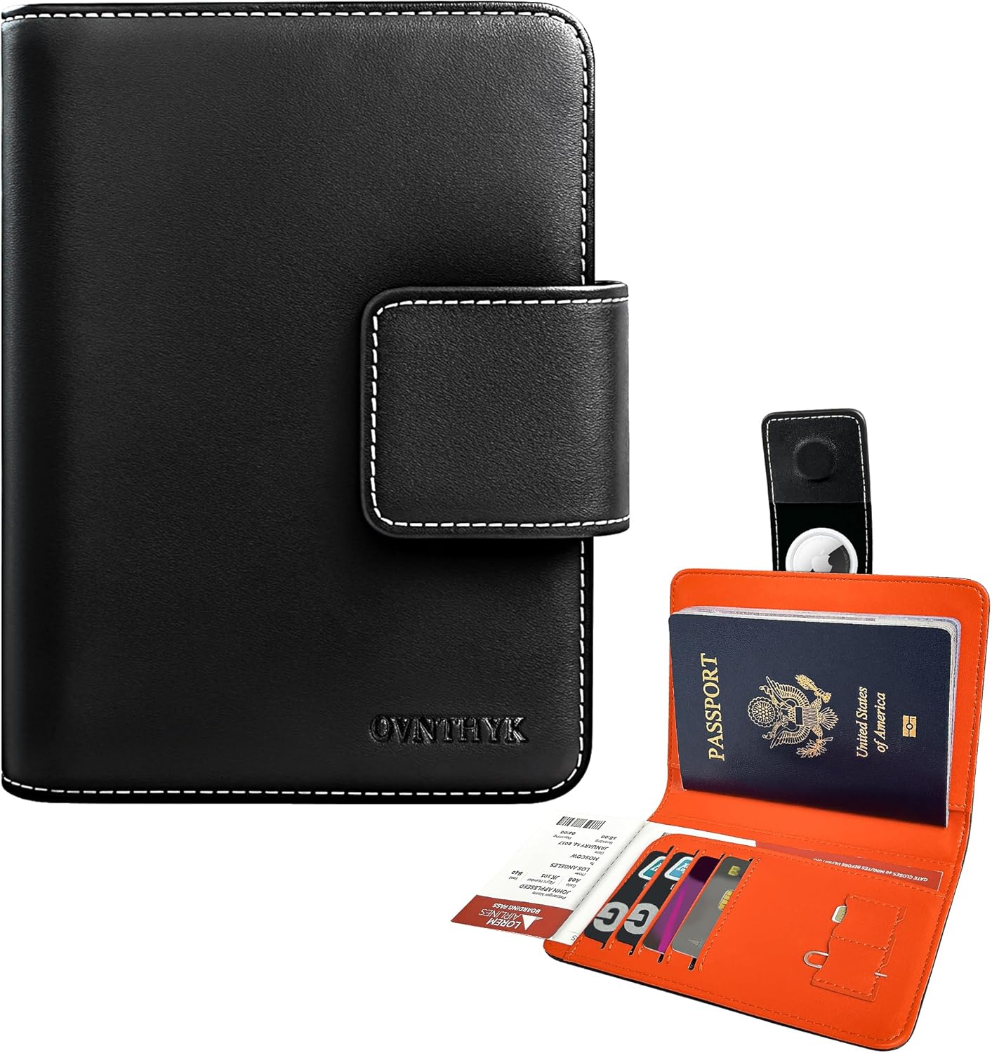 Passport Holder with Hidden AirTag Slot – RFID Blocking Leather Travel Wallet, Black, add promo code A9QAGXA7 and it drops 50% to $15.99!!