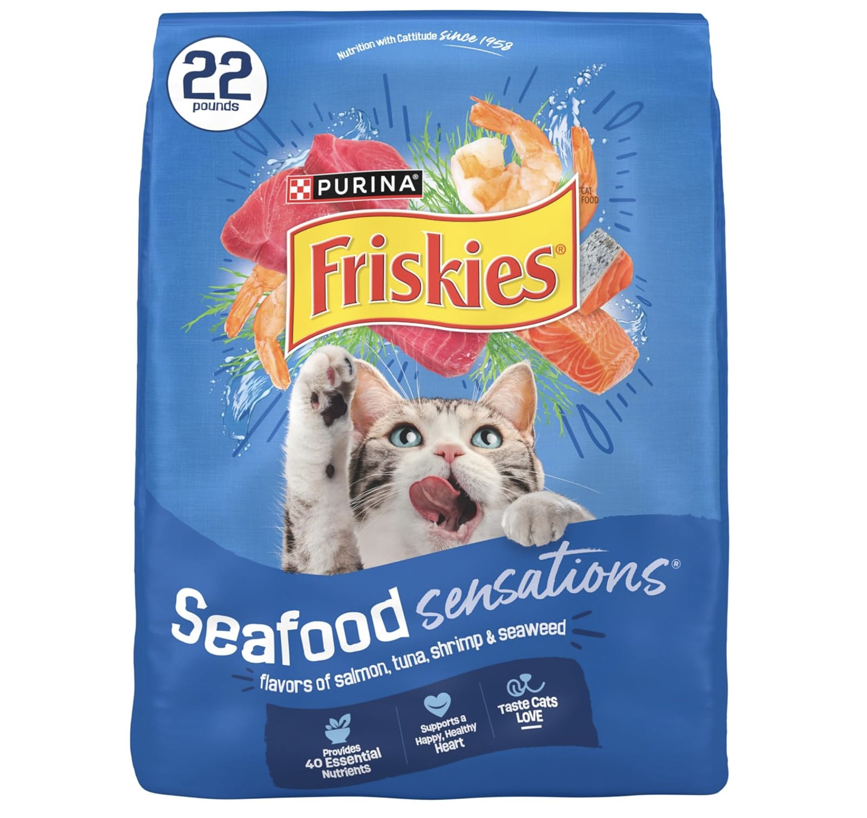 Purina Friskies Dry Cat Food Seafood Sensations With Salmon, Tuna, and Shrimp Flavors – 22 lb. Bag, $20.61 on sale for $19.48 but opt for S&S and clip the coupon, it goes as low as $15.59!!!