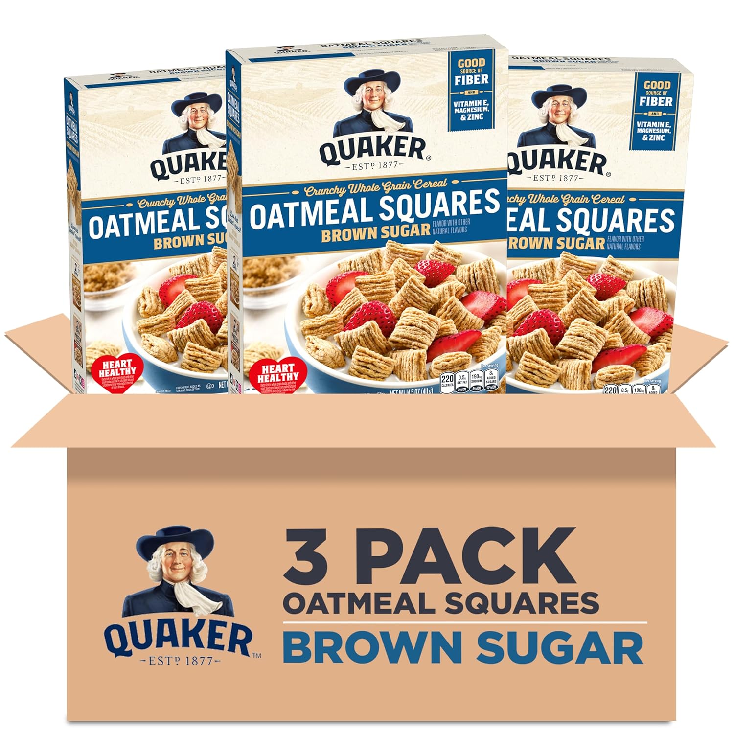 Quaker Oatmeal Squares Breakfast Cereal, Brown Sugar, 14.5oz Boxes (3 Pack), on sale right now for JUST $5.96 and lower with S&S!! That’s less than $2 a box!!