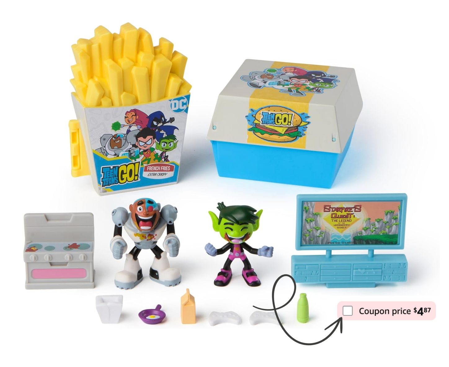 Spin Master Teen Titans Go! Kitchen Chaos Dis-Play Set with Beast Boy and Cyborg Figures and Accessories on sale for $4.87 when you clip the coupon! This will go fast!
