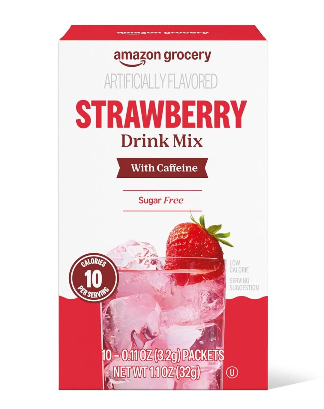 Amazon Grocery, Strawberry Drink Mix with Caffeine, 10 packets, 1.1 Oz on sale for $1.87 but if you opt for subscribe and save and clip the 25% off coupon you score it for as low as $1.12!