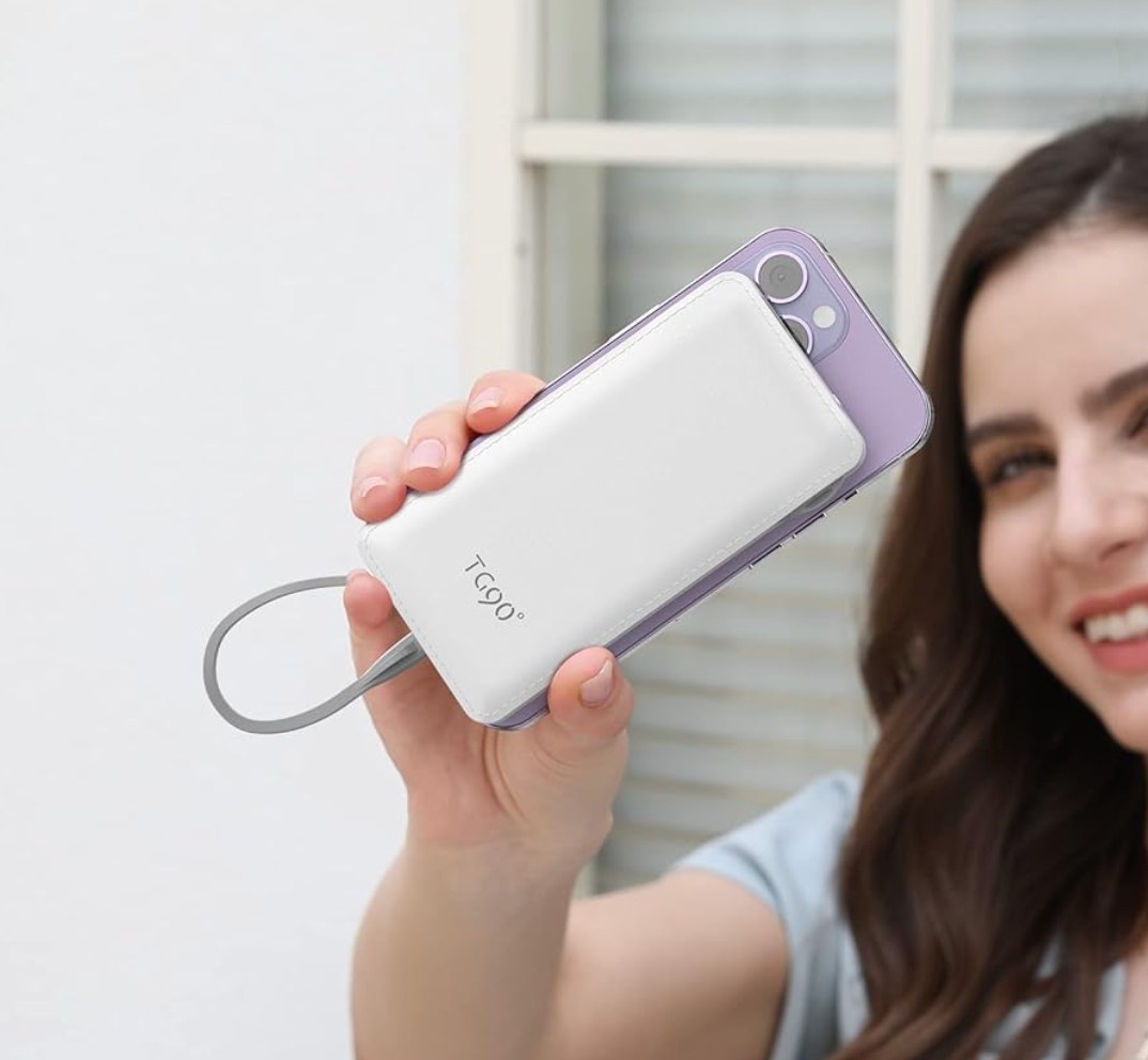 TG90° Cellphone Portable Charger with Built in Lightning and Android Cables Power Bank on sale for $24.99 but with promo code L7HO9XJK you score it for $12.49!