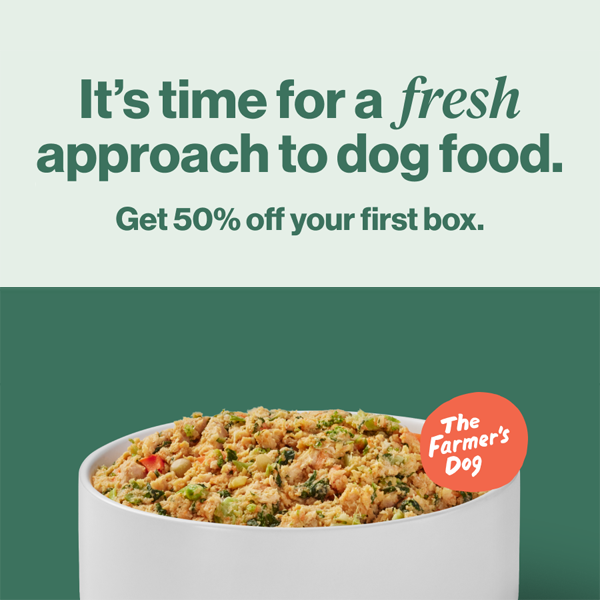 The Farmer’s Dog new promo!! Smarter, healthier pet food. Real food, made fresh, delivered. Get 50% off your first box!