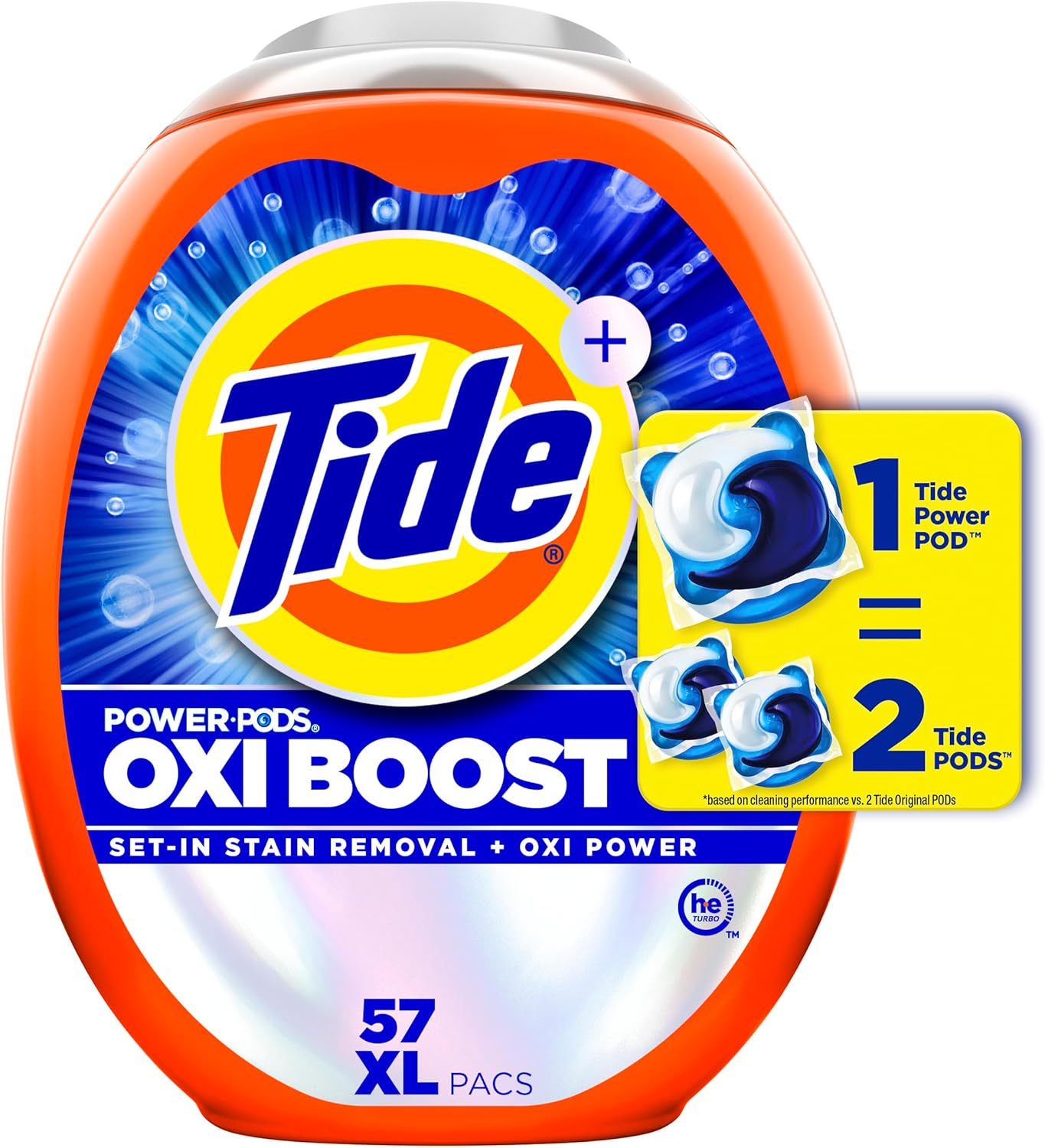 Tide Oxi Boost Power PODS Laundry Detergent Pods, 57 Count, Stain Remover Plus Oxi Power, $24.94 down to $20.50 but add 4 total items to your cart from the selected items, redeem promo code STOCKUPPG, and score another 33% off!!!