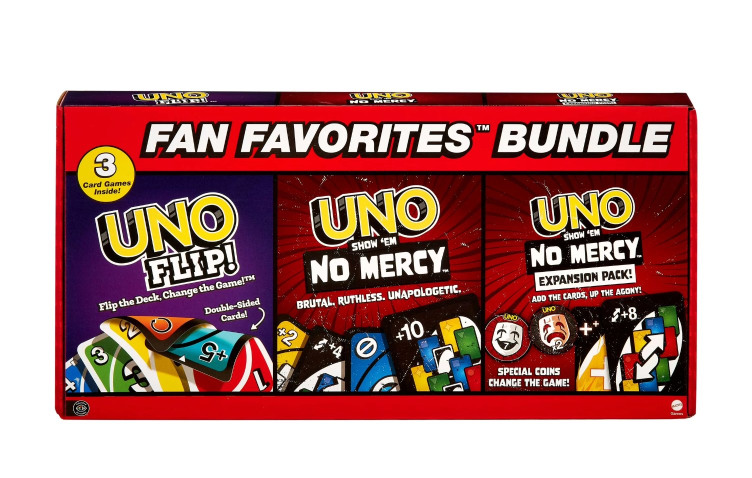 UNO Flip, UNO Show ‘Em No Mercy, UNO Show ‘Em No Mercy Expansion Pack on sale for $10 at Walmart!! That’s $3.33 a game!