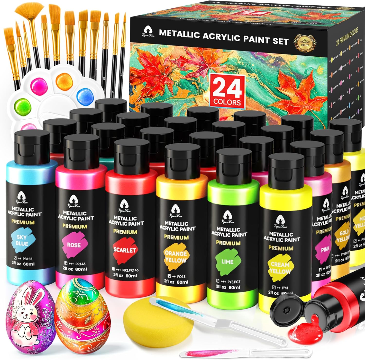 VigorFun 40 Pcs Metallic Acrylic Paint Set