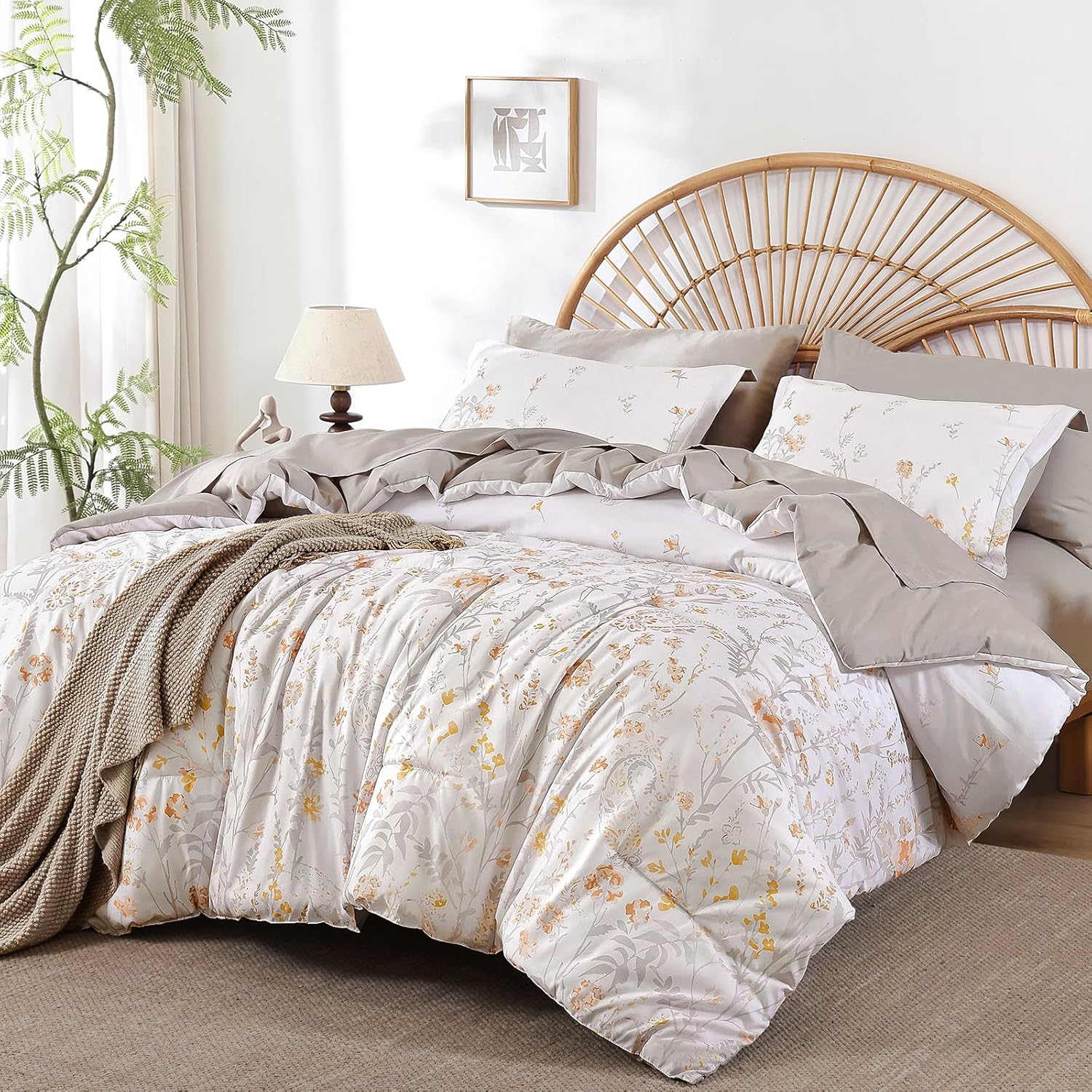 Yiran Grey Floral Comforter Set Queen Size, 7 Piece, redeem promo code 382UY3GA and it drops 50% to just $28.99 in pictured option! Low stock so it may not last long!