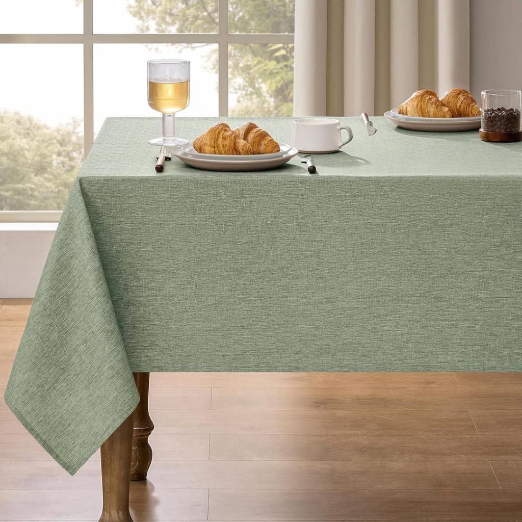 Faux Linen Waterproof Texture Farmhouse Washable Rectangular Tablecloth, Sage Green, 52 x70 Inch, on sale now for ONLY $5.59!!!
