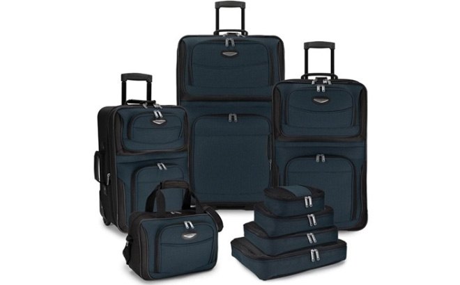 Travel Select Amsterdam Softside Expandable Luggage with Rolling Wheels, 8-Piece Set available in Navy or Burgundy for only $79.99 at WOOT and it ships FREE with your Amazon Prime Membership!