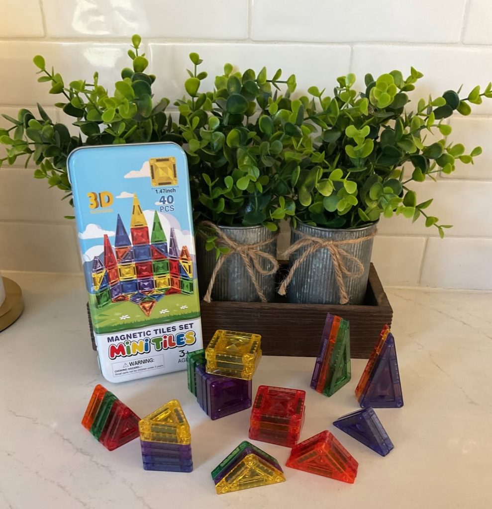 The trick with this toy is getting them all back into the container after you take them out!! Took me FOREVER!!! 40PCS Mini Magnetic Tiles on sale for $18.99 but with promo code NOCLPNMJ you score it for $9.99!
