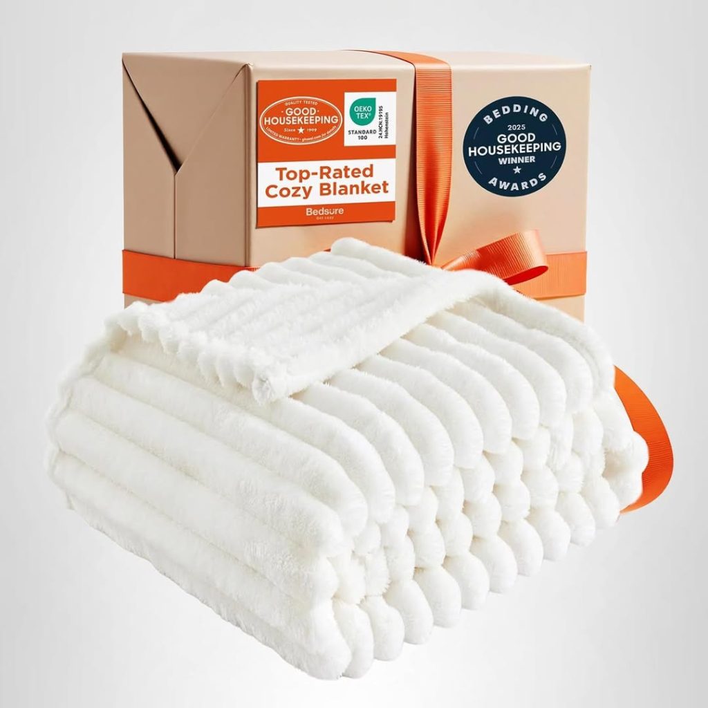 Bedsure Gentle Soft White Throw Blanket on sale for $13.49 but with promo code 4B9LJT5X you score it for $8.36!!