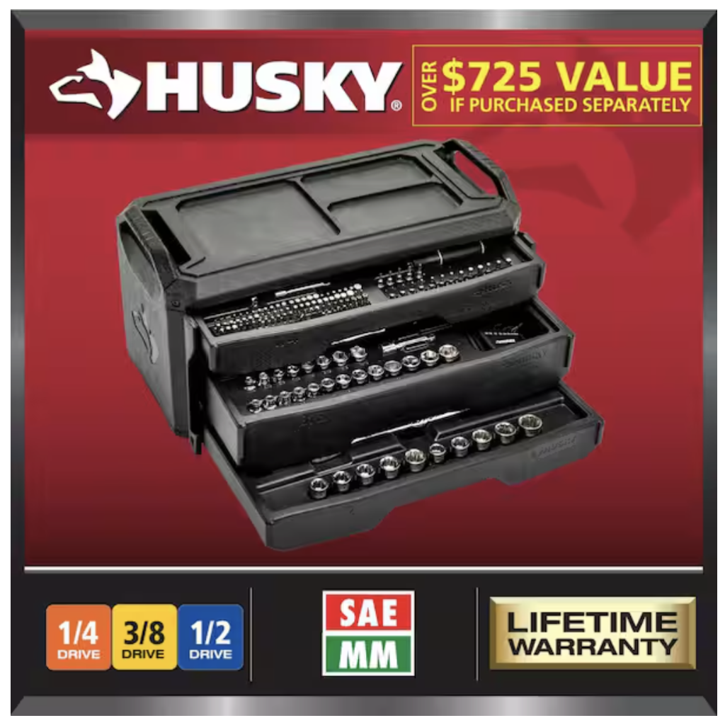 The Home Depot now has this Husky 280 Piece Mechanics Tool Set on Special Buy for just $99.00….down from $199.00!!!!