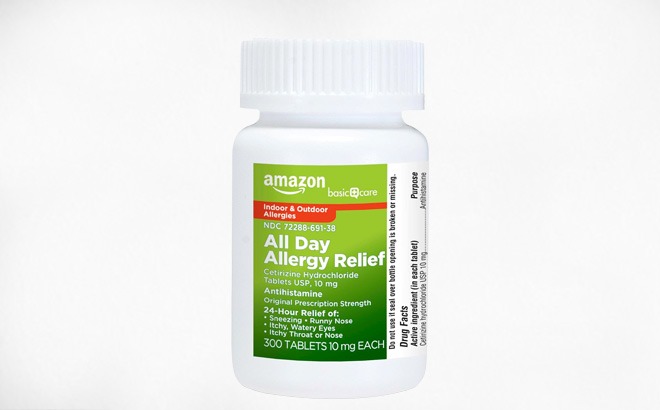 Subscribe and Save Deal!!! Amazon Basic Care 24 Hour Allergy Relief, Cetirizine Hydrochloride Tablets, 10 mg, 300 Count as low as $8.59 when you clip the 25% off coupon and opt for S&S!!