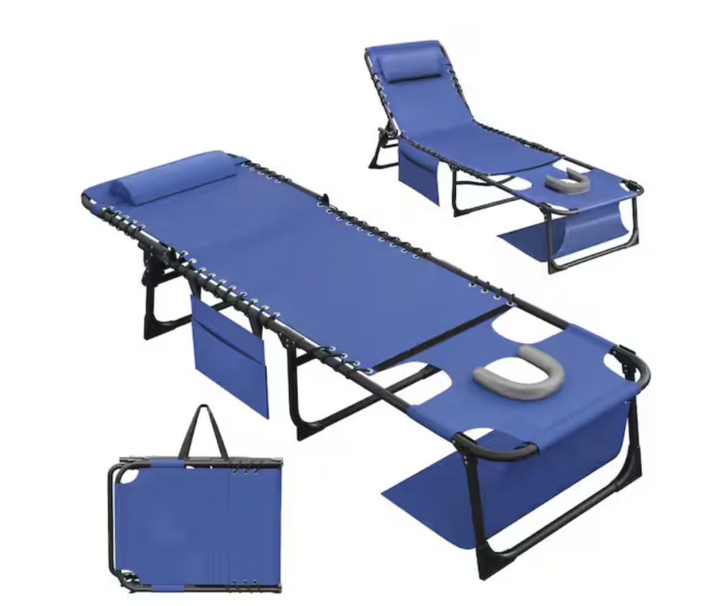 Metal Folding Outdoor Chaise Lounge with Face Hole on sale for $58.97 at The Home Depot and it ships FREE!! The black option is actually a buck less!