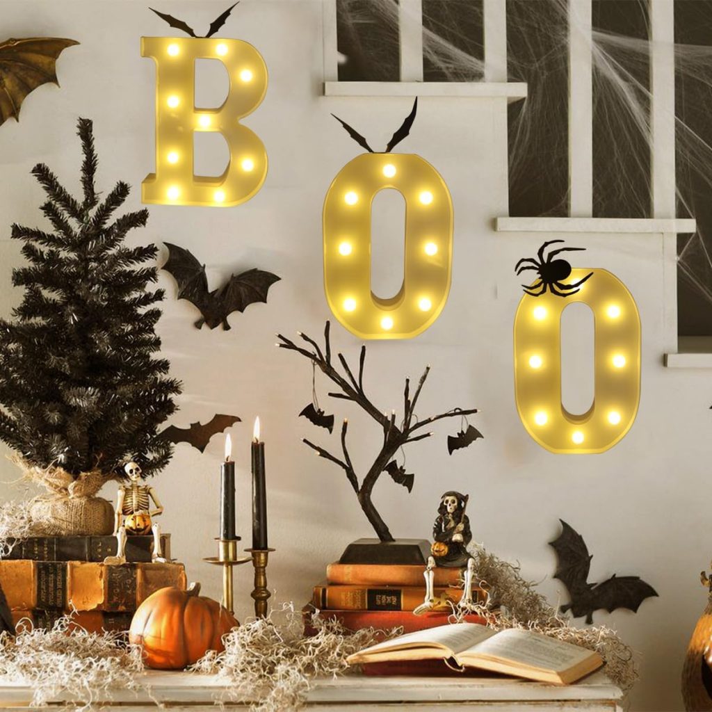 Halloween Decorations, BOO Lights Up Letters, Was $19.99 down to $9.99 with promo code HB7PT8CD.