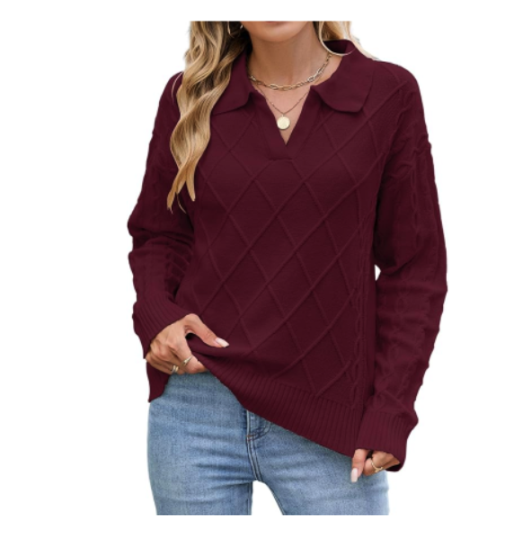 Womens Cable Knit Polo Pullover Sweater, Was $38.99 down to $19.49 with clickable coupon and promo code 5A2TM2MC.
