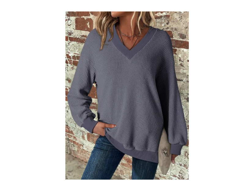 Women’s V Neck Long Sleeve Waffle Knit Top, Was $28.99 down to $14.49 with promo code EZQ7SSMJ.