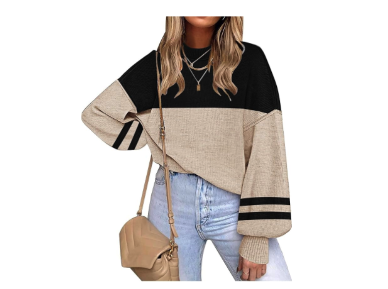 Crew Neck Striped Oversized Sweater, $27.68 for Prime Day.