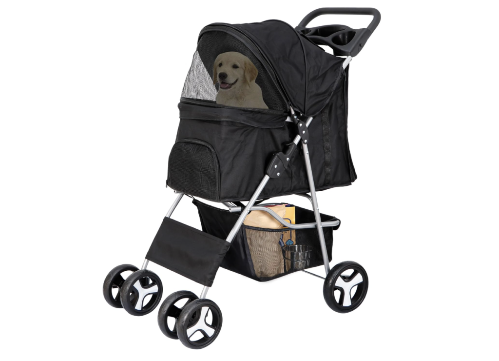 Stroller for Small or Medium Dog/Cats, Foldable Carrier Jogger, With Storage Basket and Cup Holder (Black), Prime Big Deal is $58.64.