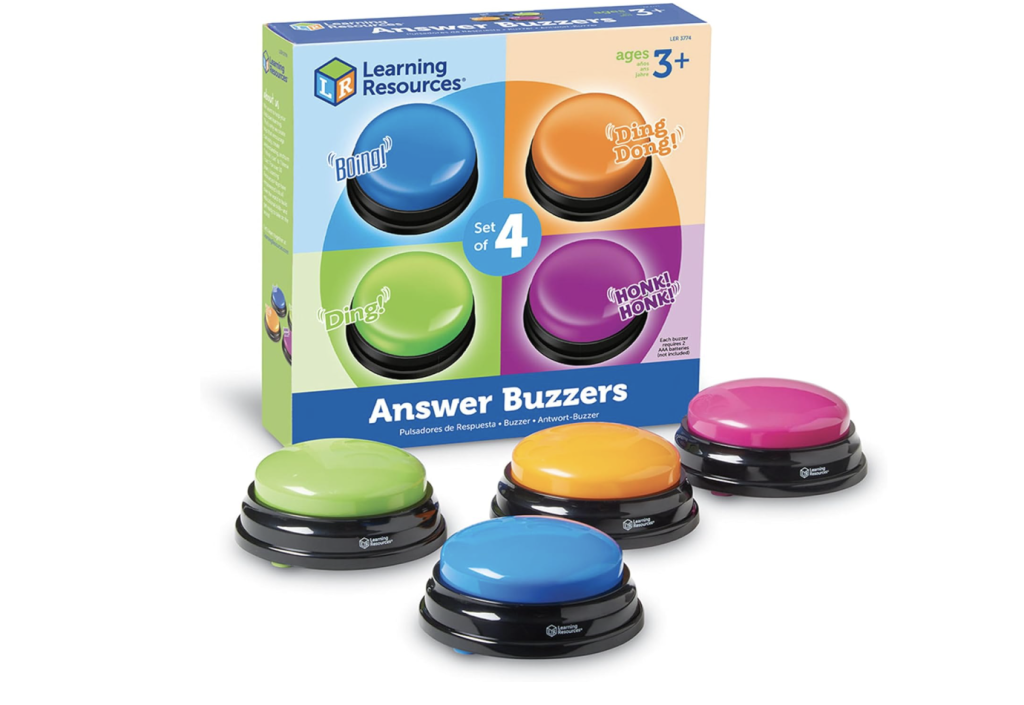 Learning Resources Answer Buzzers – Set of 4, Game Show Buzzers, Perfect for Family Game, School and Trivia Nights for Kids. Prime Day price is $14.49.
