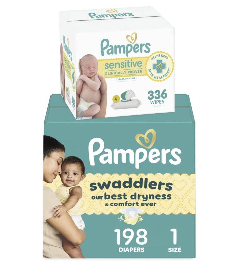 Pampers Swaddlers Disposable Baby Diapers Size 1, 198 Count with Sensitive Water Based Baby Wipes 4X Pop-Top Packs (336 Count), $68.93 but now down to just $50.48 for Prime Members!