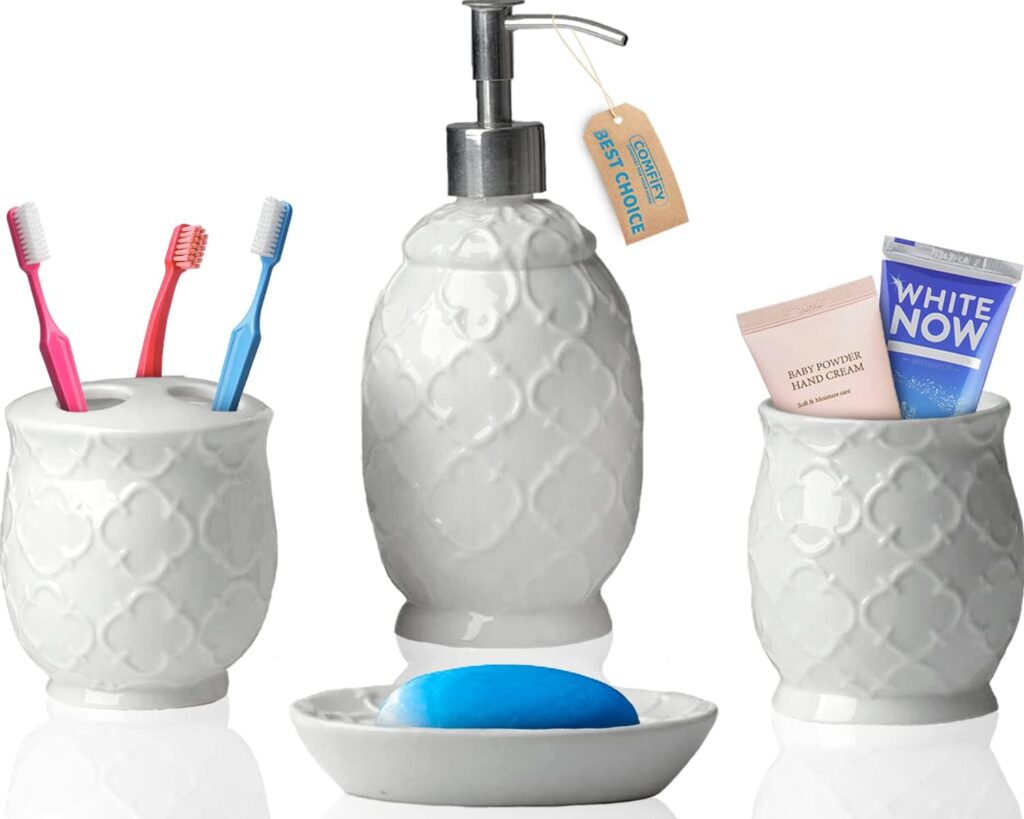 Designer 4-Piece Bathroom Accessory Set on sale for $9.99! Other colors on sale too!