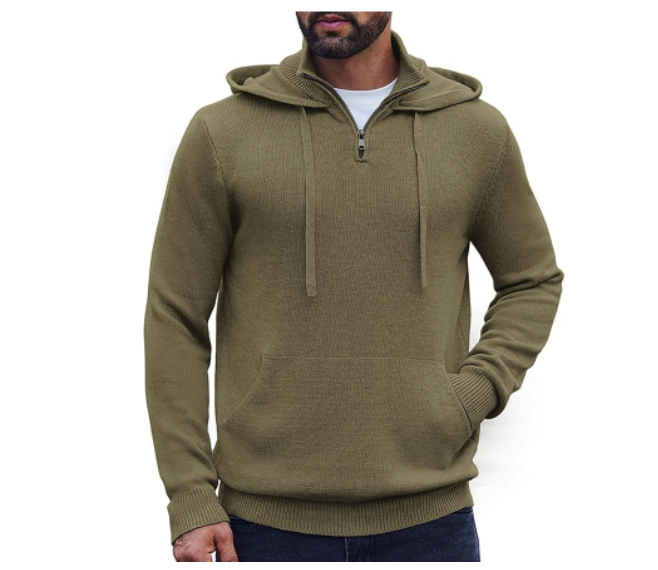 Men’s Hooded Half Zip Sweater, Only $14.99 with promo code ZDJRZTTE.