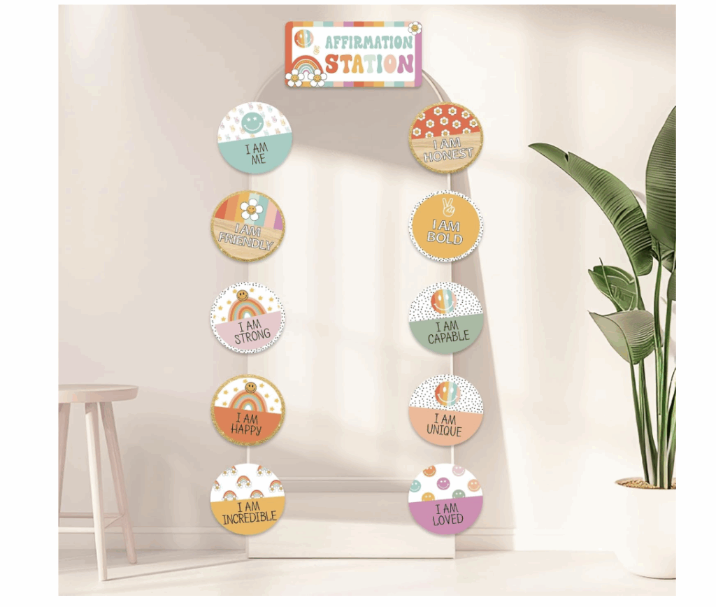 This is so cute for the classroom! Retro Affirmation Station Bulletin Board Set, Groovy Positive Classroom Decoration, Mirror not included! Only $3.99, no code needed.