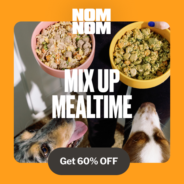Limited time only and great for our 4-legged friends!! Say Bye To Boring Dog Food! Get 60% off + a Free Storage Tub! Try Nom Nom!