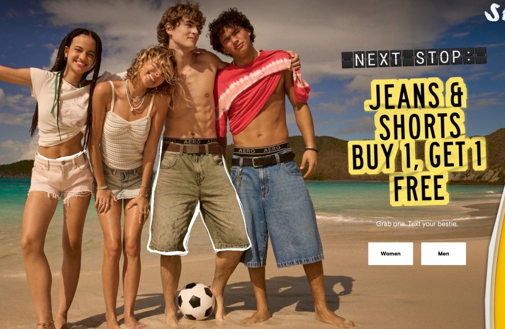 Aeropostale is having their BUY 1, GET 1 JEAN sale!!!! Add two pairs for as low as $39.50 and score them both for $39.50, that’s $19.75 a pair!!! Works on shorts too!